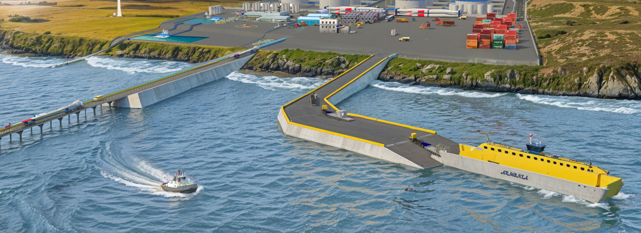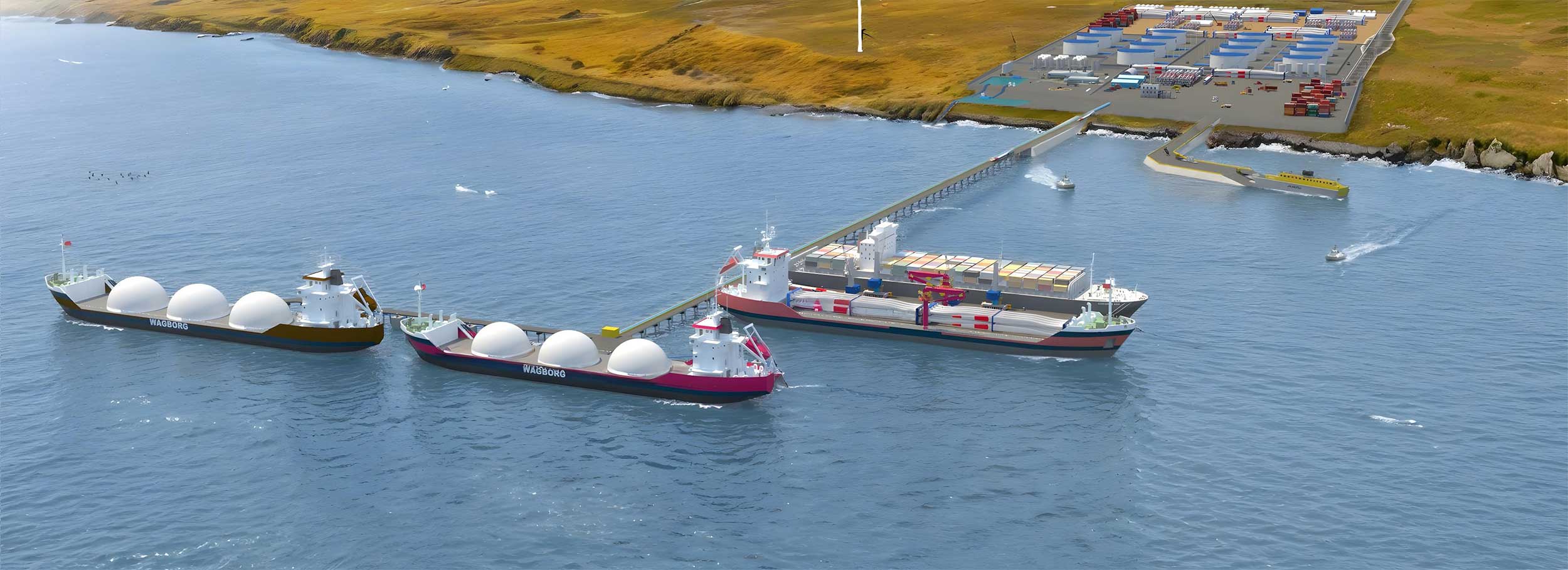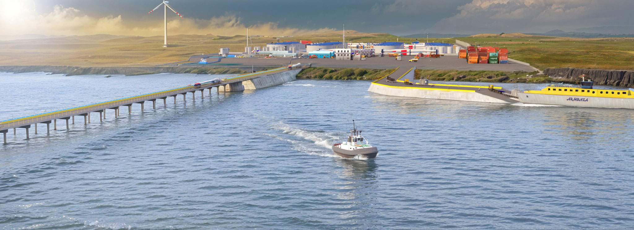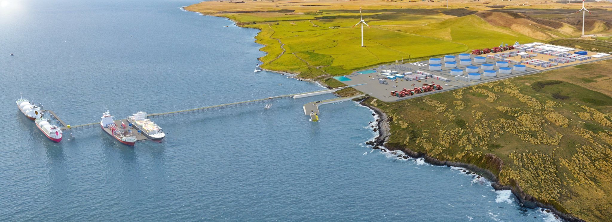 Es un proyecto portuario sustentable, concebido como un nodo logístico de escala internacional que integra producción, exportación y almacenamiento de hidrógeno verde (H₂V) y amoníaco verde (NH₃V)